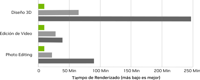 Hardware: Probado en una laptop NVIDIA Studio con GPU GeForce RTX 3060 para laptop e Intel Core i7 de 12ª generación, y en una MacBook Pro de 16" con M1 Pro. El rendimiento se ha medido utilizando varios sistemas y variará según el modelo. Consulta con el fabricante para conocer su modelo y especificaciones particulares.