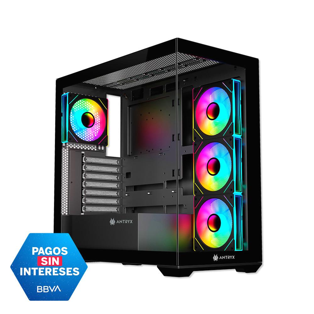 Fantásticos efectos de luz ARGB: 3 ventiladores ARGB con efecto infinito de 12cm incluidos en la parte lateral y 1 ventilador ARGB con efecto infinito en la parte trasera, con más patrones y más modos de color