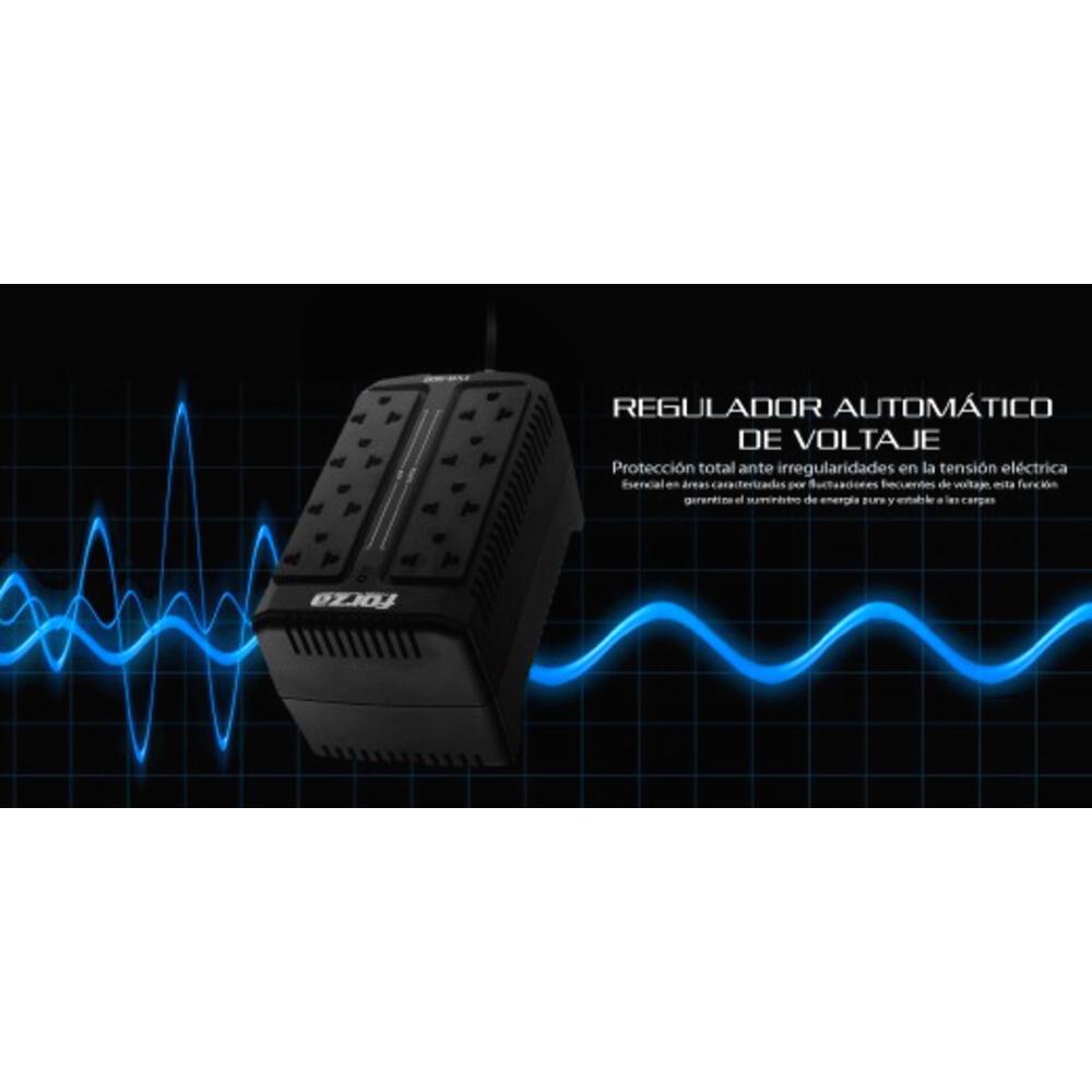 Estabilizador de voltaje Forza 900VA/450W, 8 salidas universales (4 con regulador + 4 con supresión)