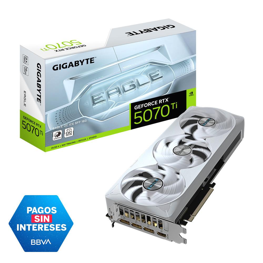 La GeForce RTX™ 5070 Ti EAGLE OC ICE SFF 16G de GIGABYTE combina potencia y diseño futurista en un formato compacto. Basada en la arquitectura NVIDIA Blackwell, ofrece un rendimiento excepcional para gamers y creadores, con tecnologías avanzadas de inteligencia artificial, ray tracing de última generación y un sistema de refrigeración WINDFORCE que asegura estabilidad incluso en las sesiones más intensas. Su estética inspirada en naves espaciales y su estructura reforzada garantizan durabilidad y estilo, mientras que su compatibilidad con NVIDIA SFF-ready la convierte en la opción ideal para equipos de tamaño reducido sin sacrificar potencia.