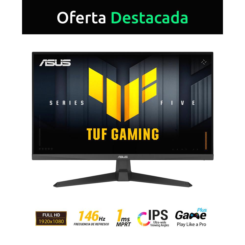 El ASUS TUF Gaming VG279QE5A es un monitor de 27 pulgadas Full HD diseñado para ofrecer una experiencia de juego inmersiva y fluida. Con un panel IPS y una frecuencia de actualización que puede sobreacelerarse hasta 146Hz, este monitor garantiza imágenes nítidas y movimientos suaves, ideales para jugadores profesionales y entusiastas. Su tecnología exclusiva ELMB Sync elimina el desenfoque de movimiento y el desgarro de pantalla, mientras que funciones como Shadow Boost y DisplayWidget Center optimizan la visualización y facilitan el ajuste de configuraciones. Además, su amplia gama de colores (125% sRGB) asegura una reproducción vibrante y precisa.