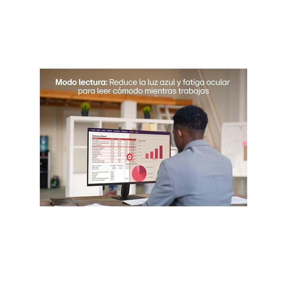 Modo lectura que ajusta brillo y temperatura de color para reducir fatiga visual.