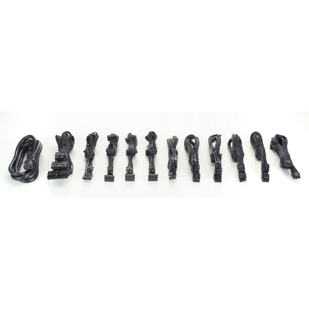 ATX 24 Pin: x1 (550 mm) EPS 4+4 Pin: x1 (600 mm) EPS 8 Pin: x1 (600 mm) SATA + Peripheral 4 Pin: 4 SATA + 2 periféricos [400(s)+120(s)+120(p) mm] PCI-e 6+2 Pin: x3 (500 mm) 12+4 Pin: x1 (650 mm) |
