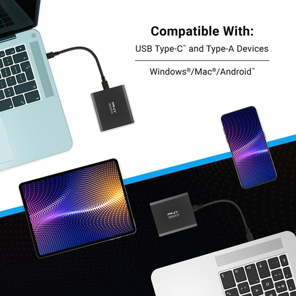 El Pro Elite es la nueva generación en almacenamiento móvil, que no solo ofrece mayor capacidad, sino también un rendimiento excepcional. Está diseñado como una solución de almacenamiento móvil superior a las generaciones anteriores de SSD portátiles con USB-A, así como a las memorias USB 3.0 tradicionales, permitiendo transferencias y almacenamiento de archivos aún más rápidos en cualquier lugar. El Pro Elite es compatible tanto con dispositivos USB-C como USB-A.
