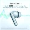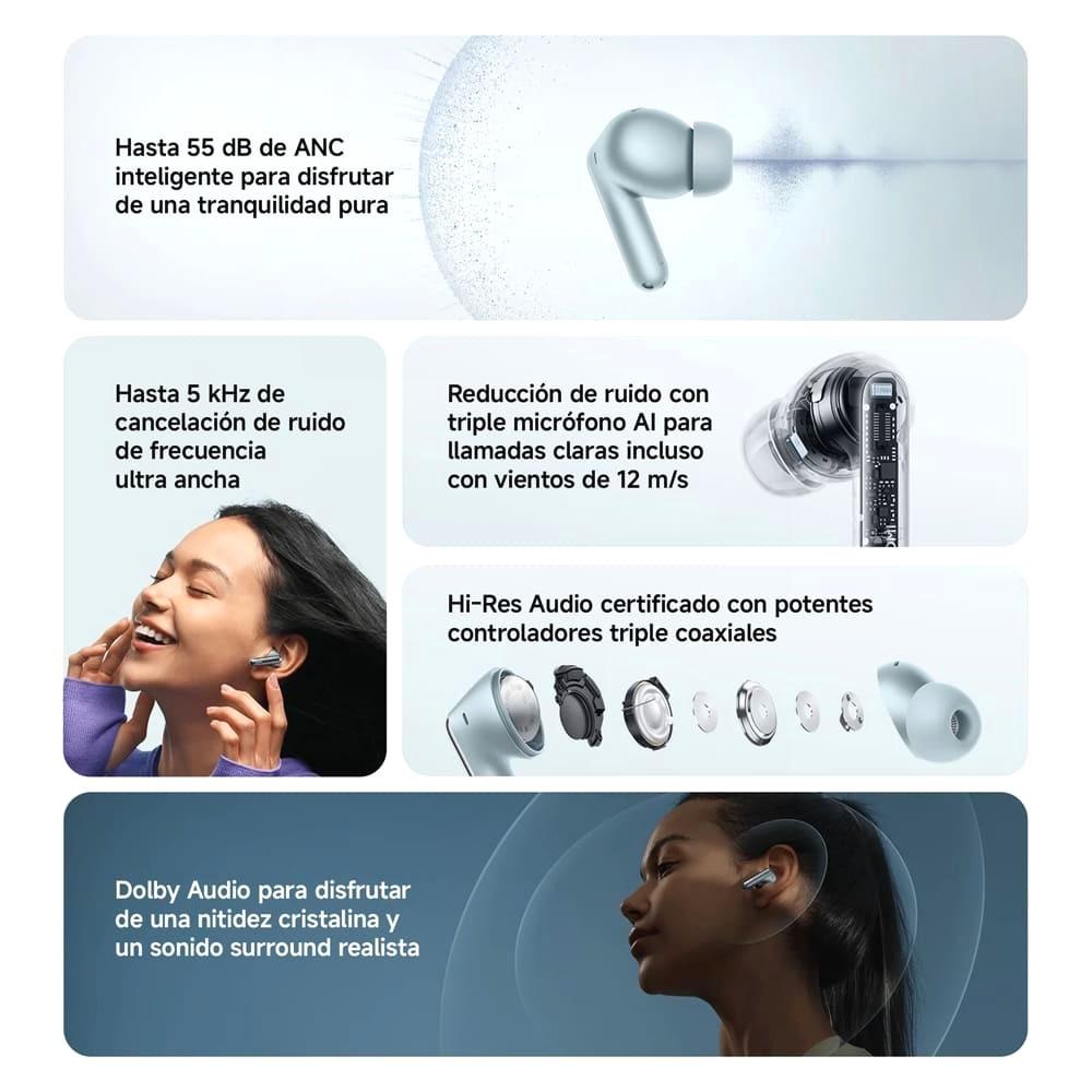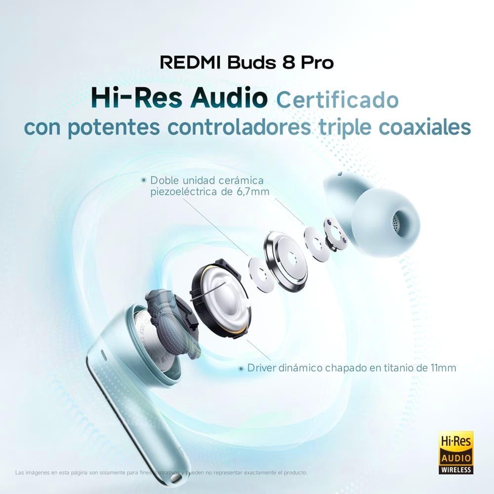 Equipados con drivers coaxiales triples mejorados, los Redmi Buds 8 Pro brindan un sonido más nítido, envolvente y con mejor detalle. También cuentan con cancelación activa de ruido de hasta 55 dB, ideal para reducir las distracciones del entorno y disfrutar una escucha más inmersiva. Su estuche con carga USB-C y su formato ligero los convierten en una excelente opción para quienes buscan rendimiento, comodidad y tecnología en unos audífonos compactos.